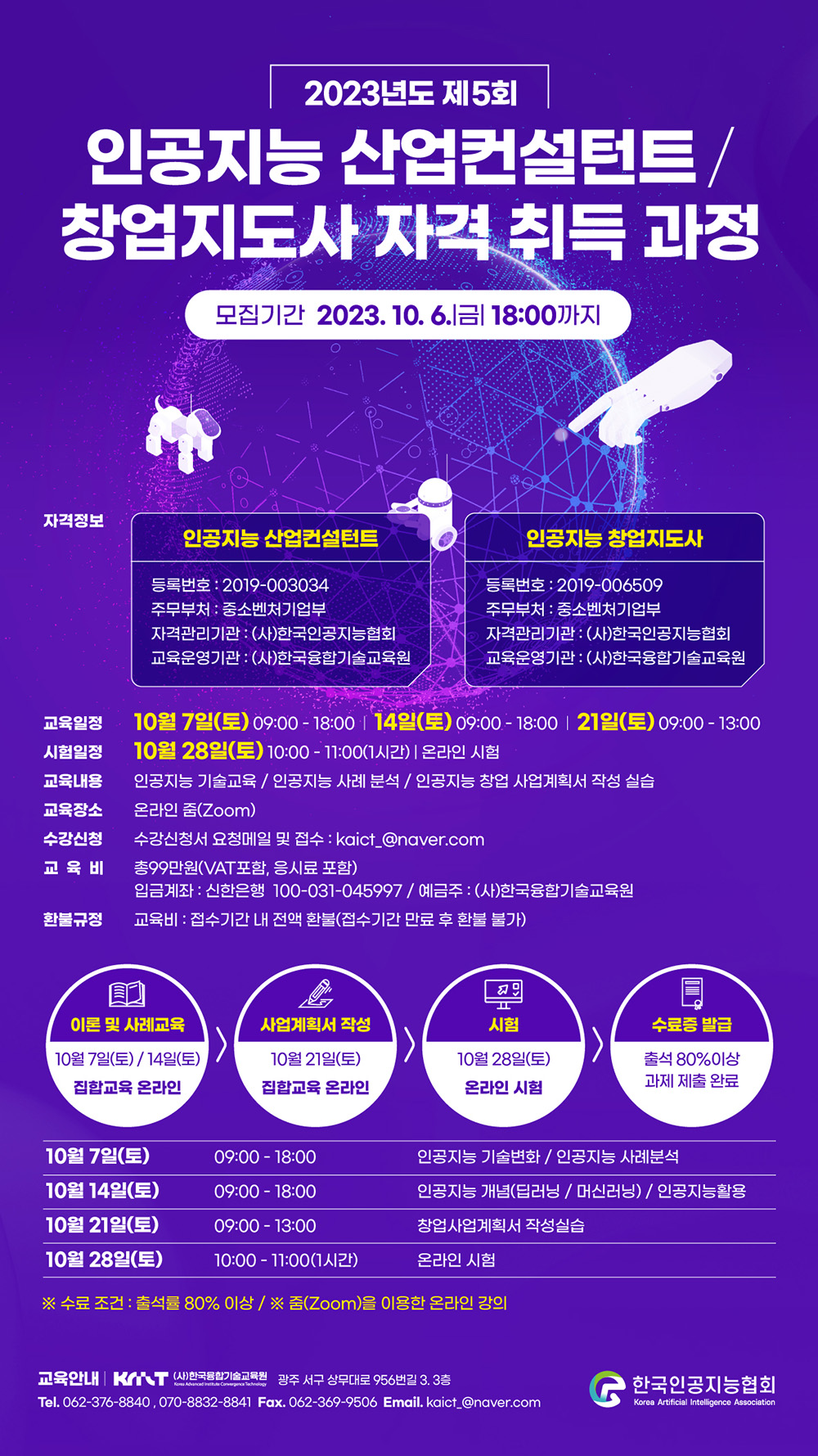 2023 Á¦5ȸ »ê¾÷ÄÁ¼³ÅÏÆ® ¹× â¾÷Áöµµ»ç ¾ç¼º°úÁ¤ ±³À°»ý ¸ðÁý (~10/6)
