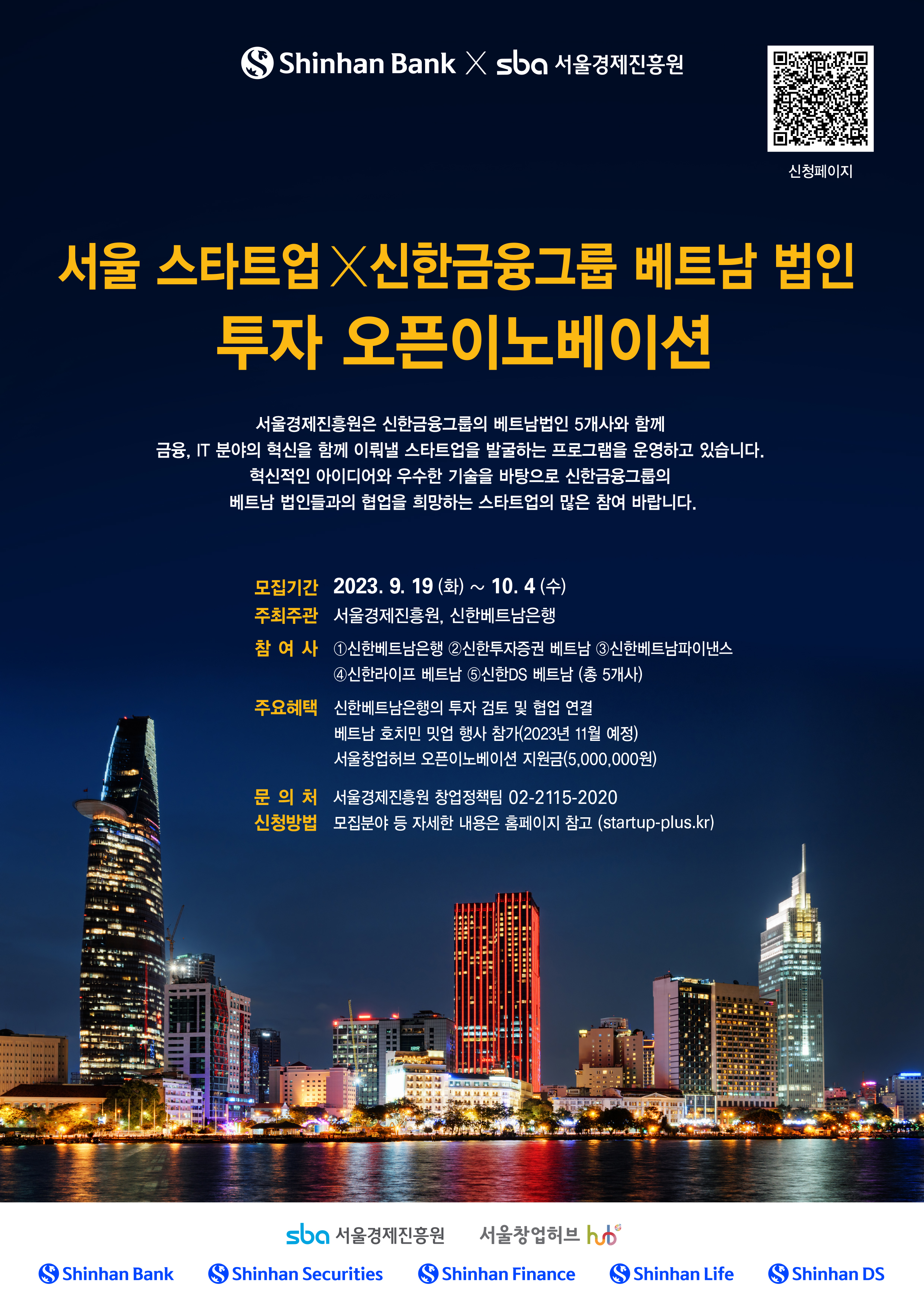 ¡à »ç ¾÷ ¸í: ¡®¼¿ï ½ºÅ¸Æ®¾÷X½ÅÇѱÝÀ¶±×·ì º£Æ®³² ¹ýÀΡ¯ ÅõÀÚ ¿ÀÇÂÀ̳뺣ÀÌ¼Ç ¡à Âü¿©°è¿»ç: ÃÑ 5°³»ç(¨ç½ÅÇѺ£Æ®³²ÀºÇà ¨è½ÅÇÑÅõÀÚÁõ±Ç º£Æ®³² ¨é½ÅÇѺ£Æ®³²ÆÄÀ̳½½º ¨ê½ÅÇѶóÀÌÇÁ º£Æ®³² ¨ë½ÅÇÑDS º£Æ®³²) ¡à Âü°¡±â¾÷ ÁÖ¿äÇýÅà ¡Û ½ÅÇѺ£Æ®³²ÀºÇàÀÇ ÅõÀÚ °ËÅä ¹× Çù¾÷ ¿¬°á ¡Û º£Æ®³² ȣġ¹Î ¹Ô¾÷ Çà»ç Âü°¡(2023³â 11¿ù ¿¹Á¤) ¡Û ¼¿ïâ¾÷Çãºê ¿ÀÇÂÀ̳뺣ÀÌ¼Ç Áö¿ø±Ý(5,000,000¿ø) - ÃÖÁ¾ ¼±¹ß ÈÄ ÁÖ°ü»çÀÎ ½ÅÇѺ£Æ®³²ÀºÇà°úÀÇ ¹Ô¾÷À» ÅëÇØ LOI¸¦ ü°áÇÑ ±â¾÷¿¡ Áö±Þ(12¿ù ¿¹Á¤) ¡à ¸ðÁýÀÏÁ¤: 2023. 9. 19.(È)~10. 4.(¼ö) * ¸¶°¨ÀÏ 23:59±îÁö Á¢¼ö °¡´É ¡à ½Åû¹æ¹ý: ½ºÅ¸Æ®¾÷Ç÷¯½º(www.startup-plus.kr)¸¦ ÅëÇØ Áö¿ø - https://www.startup-plus.kr/cms_for_portal/process/program/view.do?c=1&s_text=%EC%8B%A0%ED%95%9C&s_program=3&c_no=4094 ¡à Á¦Ãâ¼·ù: 1) ½Åû¼(½ÅûÆäÀÌÁö ³» ÷ºÎµÈ ¾ç½Ä), 2) IRÀÚ·á(±¹¹®, ¿µ¹® °¢ 1ºÎ), 3) »ç¾÷ÀÚµî·ÏÁõ(3°³¿ù À̳» ¹ß±ÞºÐ) |