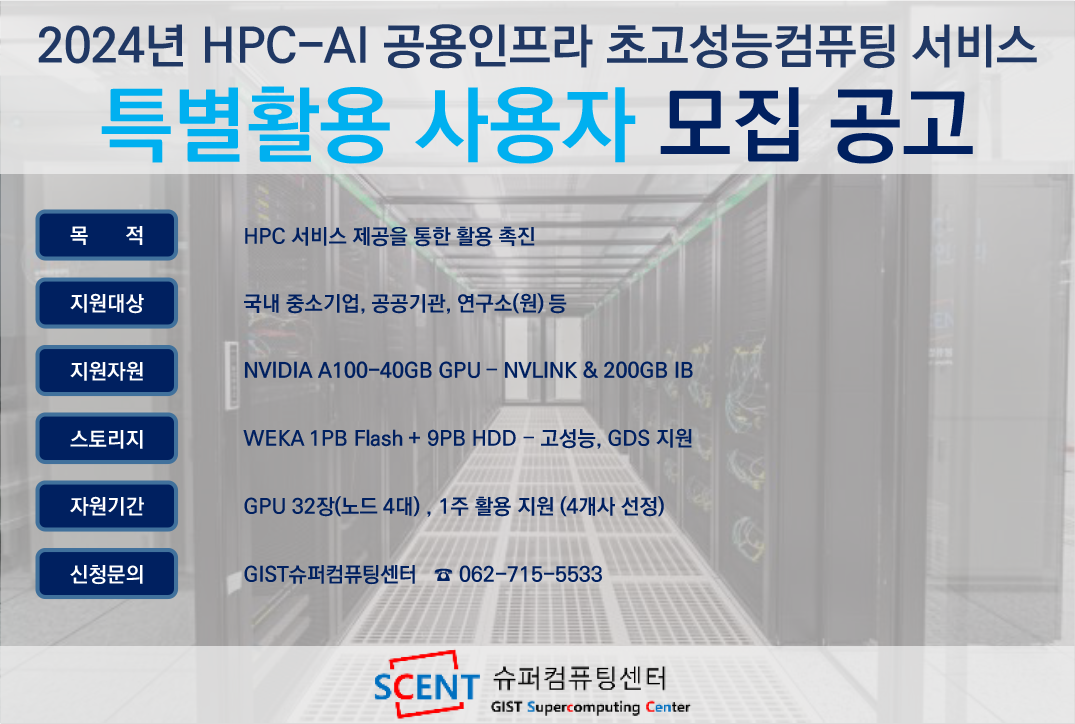2024³â HPC-AI °ø¿ëÀÎÇÁ¶ó ÃÊ°í¼º´ÉÄÄÇ»ÆÃ ¼ºñ½º Ưº°È°¿ë »ç¿ëÀÚ ¸ðÁý °ø°í