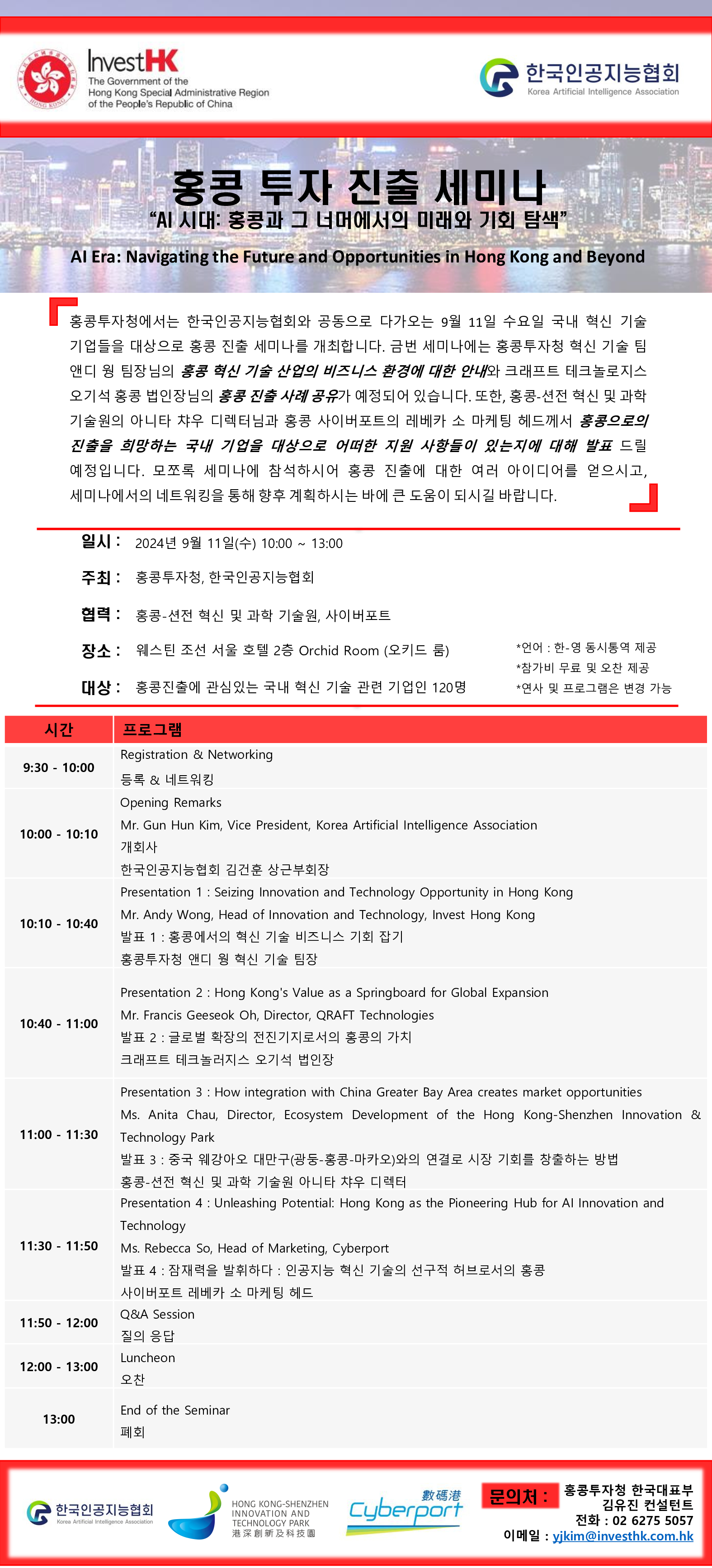 ±¹³» Çõ½Å AI ±â¾÷ÀÇ È«Äá ÁøÃâ Áö¿øÀ» À§ÇÑ ¼¼¹Ì³ª 9¿ù 11ÀÏ °³ÃÖ
