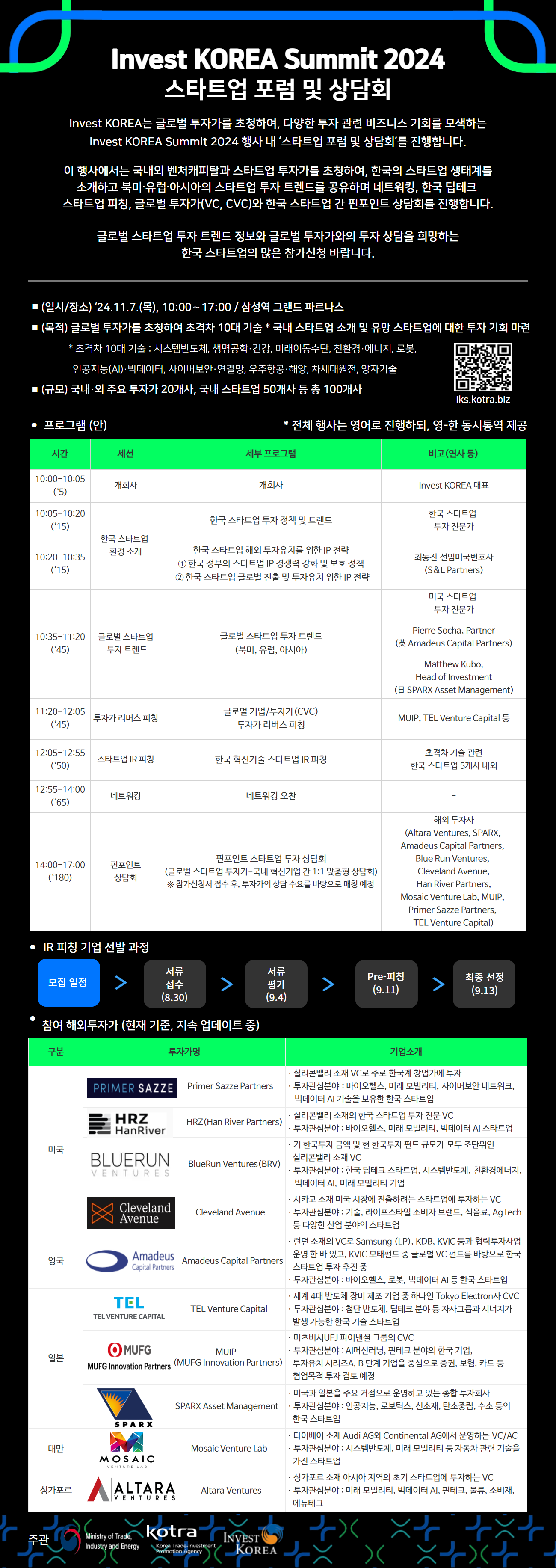 Invest KOREA Summit 2024 ½ºÅ¸Æ®¾÷ Æ÷·³ ¹× »ó´ãȸ