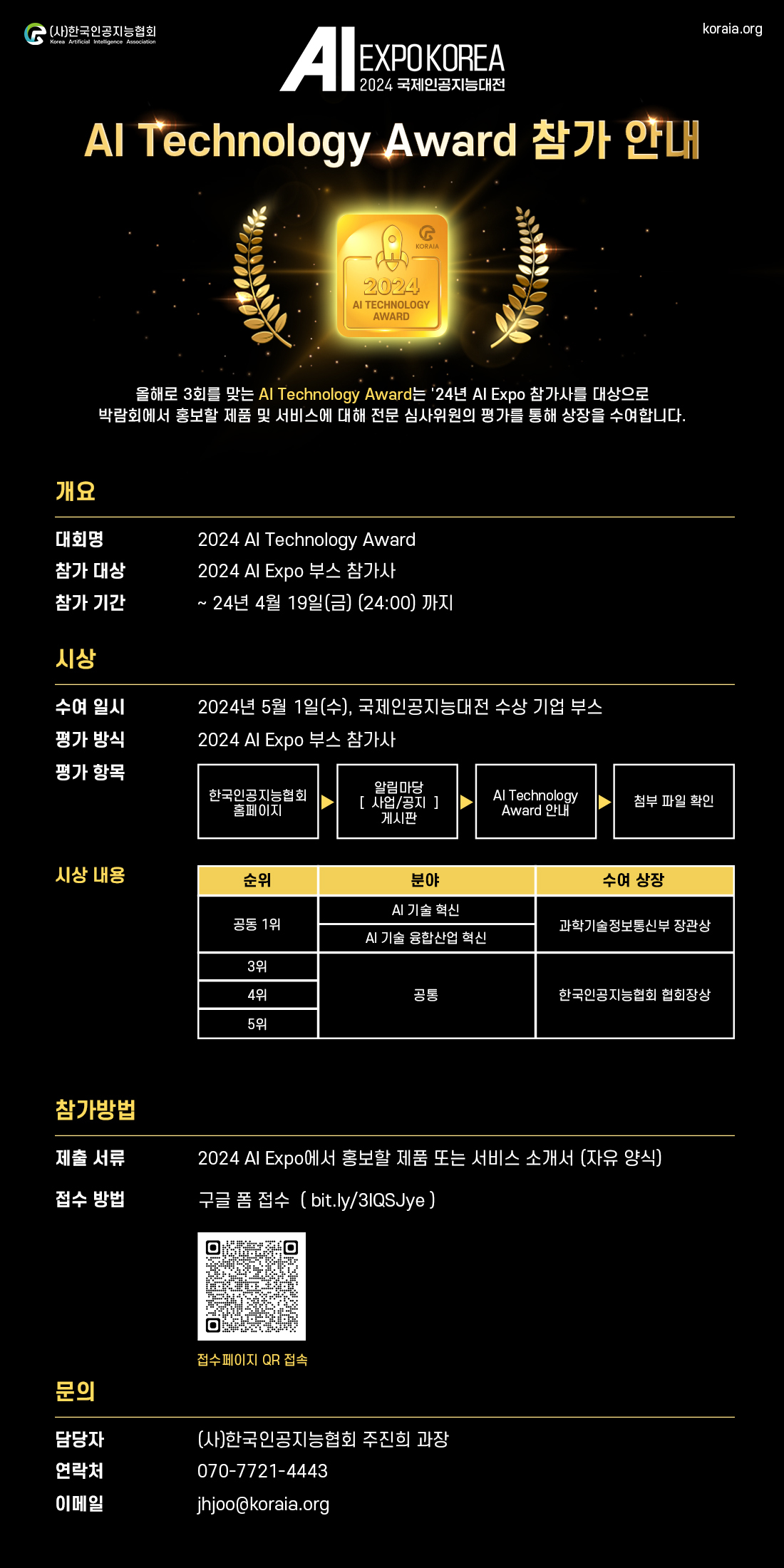[Çѱ¹ÀΰøÁö´ÉÇùȸ] 2024 AI Technology Award ¾È³»
